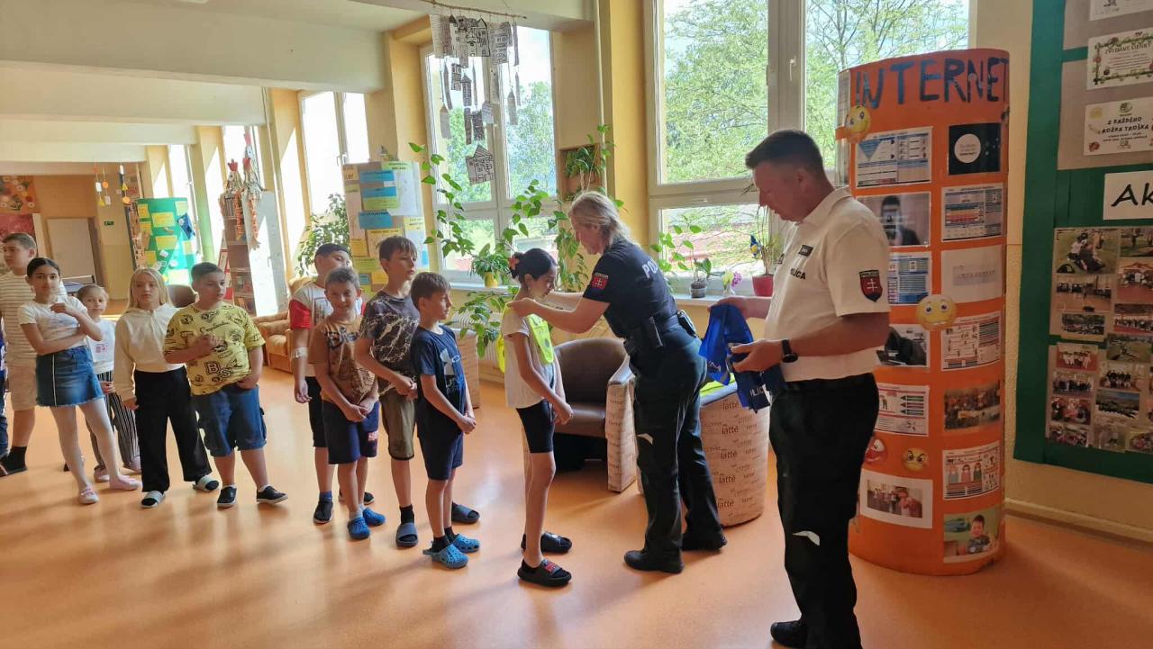 Dnes našich úspešných žiakov navštívilo vedenie dopravnej polície z Popradu, ktorí im osobne zablahoželali a odovzdali vecné ceny.