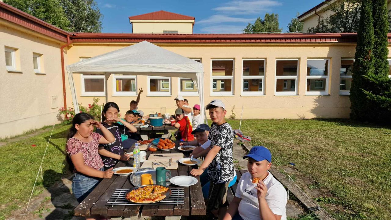 Naša prvá noc v škole bola plná nezabudnuteľných zážitkov, smiechu, radosti. Pustili sme sa do športových aktivít, kde sme sa vybláznili. Prišiel čas urobiť kulinárske umenie- pripravili sme si vlastnú pizzu. Vôňa opekaných špekáčok pri večernom ohni bola jednoducho úžasná. Vrcholom večera bola skrývačka v budove školy v tme. Bolo úžasné napätie so šťastím. Ráno sme sa zobudili s úsmevom na tvári a deň sme odštartovali sýtymi párkami. A ako čerešnička na torte, na desiatu sme si pripravili chutné palacinky.
