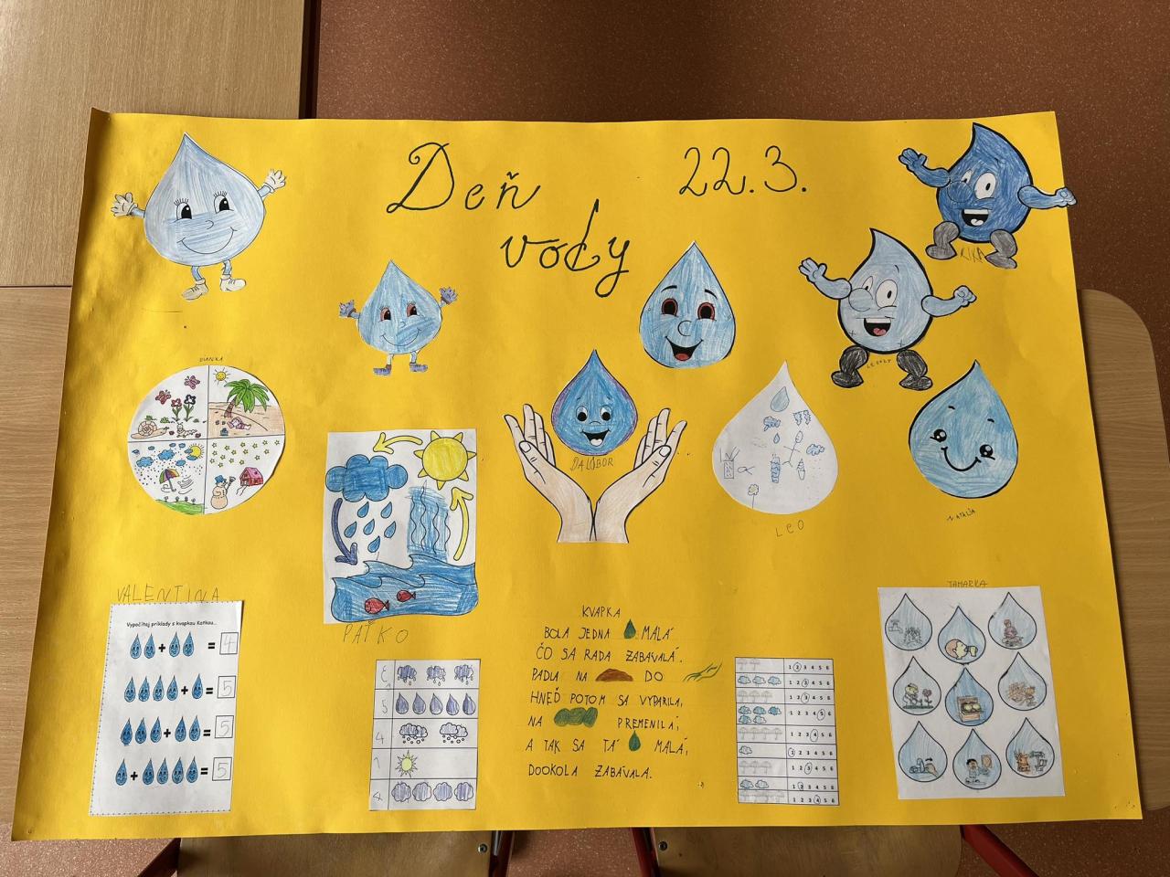 Aj v tomto roku si v tento deň žiaci prostredníctvom zážitkového učenia pripomenuli, aká  dôležitá  je  voda  pre  nás  a  pre  celú  našu  planétu  Zem.  Tak,  ako  je  voda neodmysliteľnou  súčasťou  nášho  každodenného  života,  tak  bola  aj v  tento deň súčasťou vyučovania na našej škole.  Preto  sme  žiakom  pripravili aktivity s cieľom poukázať  na  jej  dôležitosť.  Žiaci  vytvorili  projekty,  pripomenuli si,  kde  sa  voda nachádza, ako s ňou hospodáriť a ako ju chrániť.