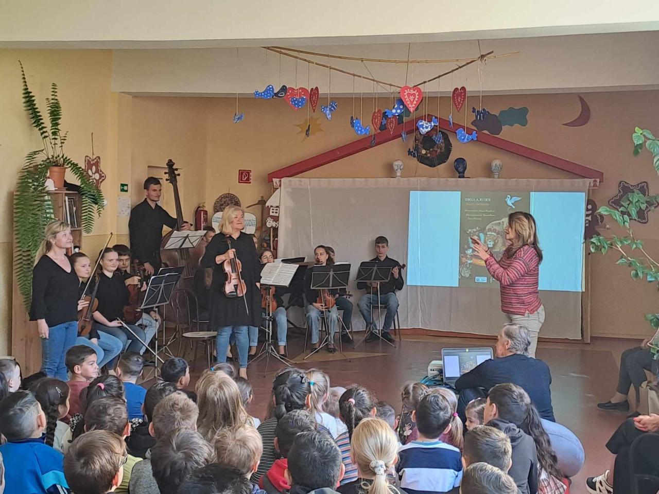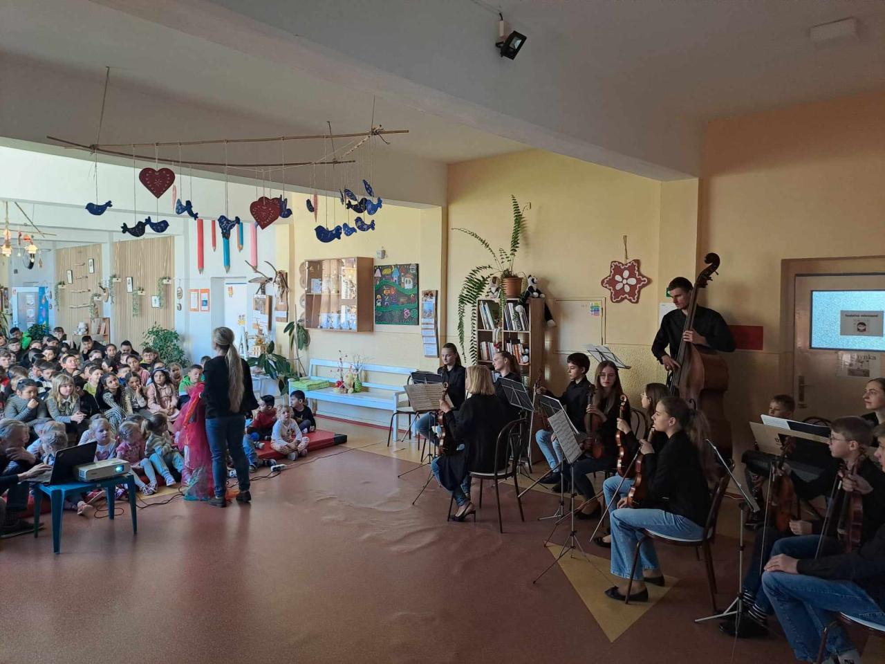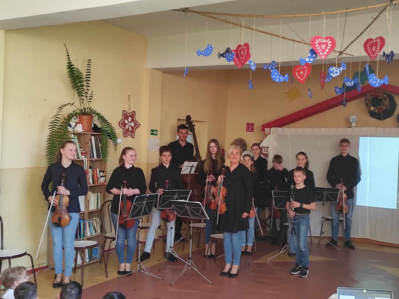 Žiaci a učitelia našej školy dnes zažili detský husľový orchester TEREZA A JEJ DETI, ktorý vedie husľová pedagogička Mgr. art. Tereza Novotná. Koncert sa niesol pod názvom KARNEVAL ZVIERA, ktorý napísal hudobný skladateľ Camille Saint- Saëns. Ďakujeme za nádherný umelecký zážitok.