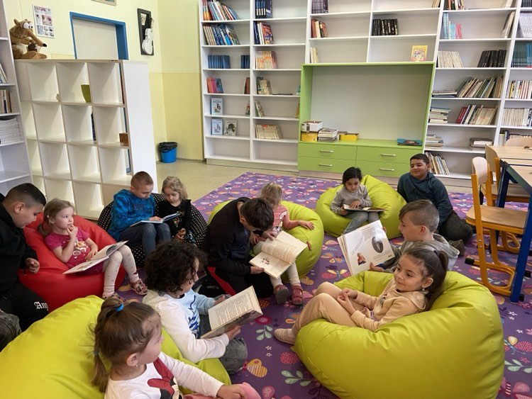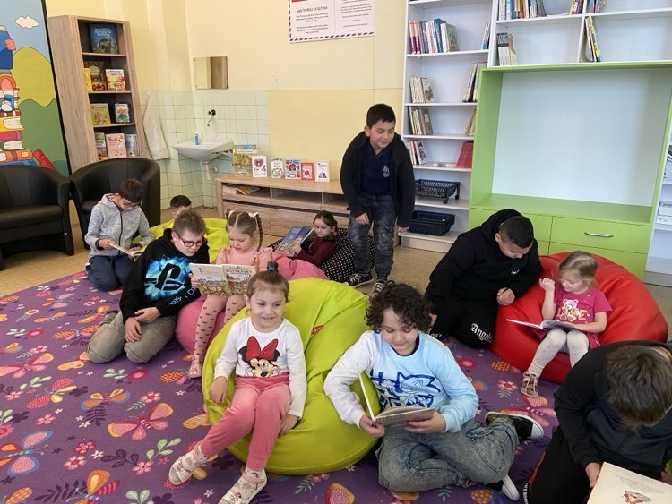 Štvrtáci sa s mladšími kamarátmi stretli v školskej knižnici, kde im prečítali príbeh o veľkonočných kuriatkach. Potom si každý škôlkar vybral knihu, ktorá sa mu páčila a starší kamarát mu čítal.