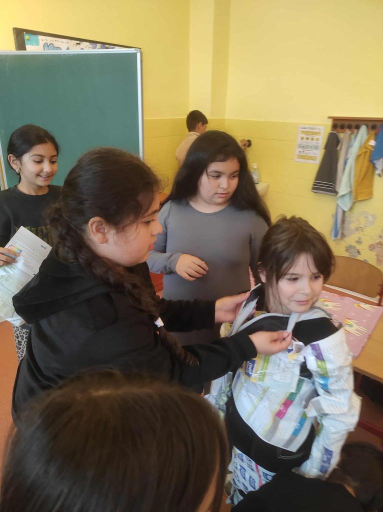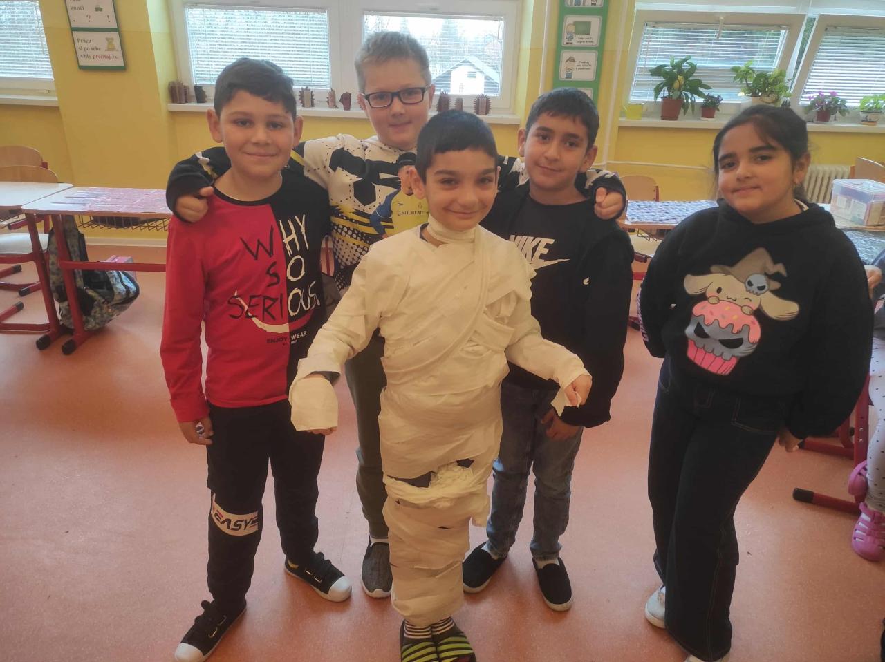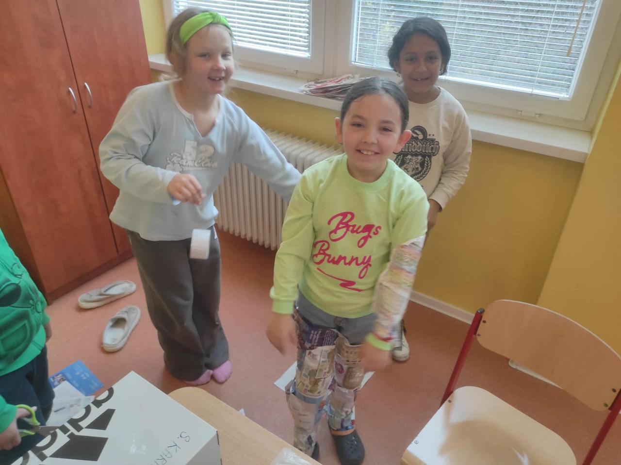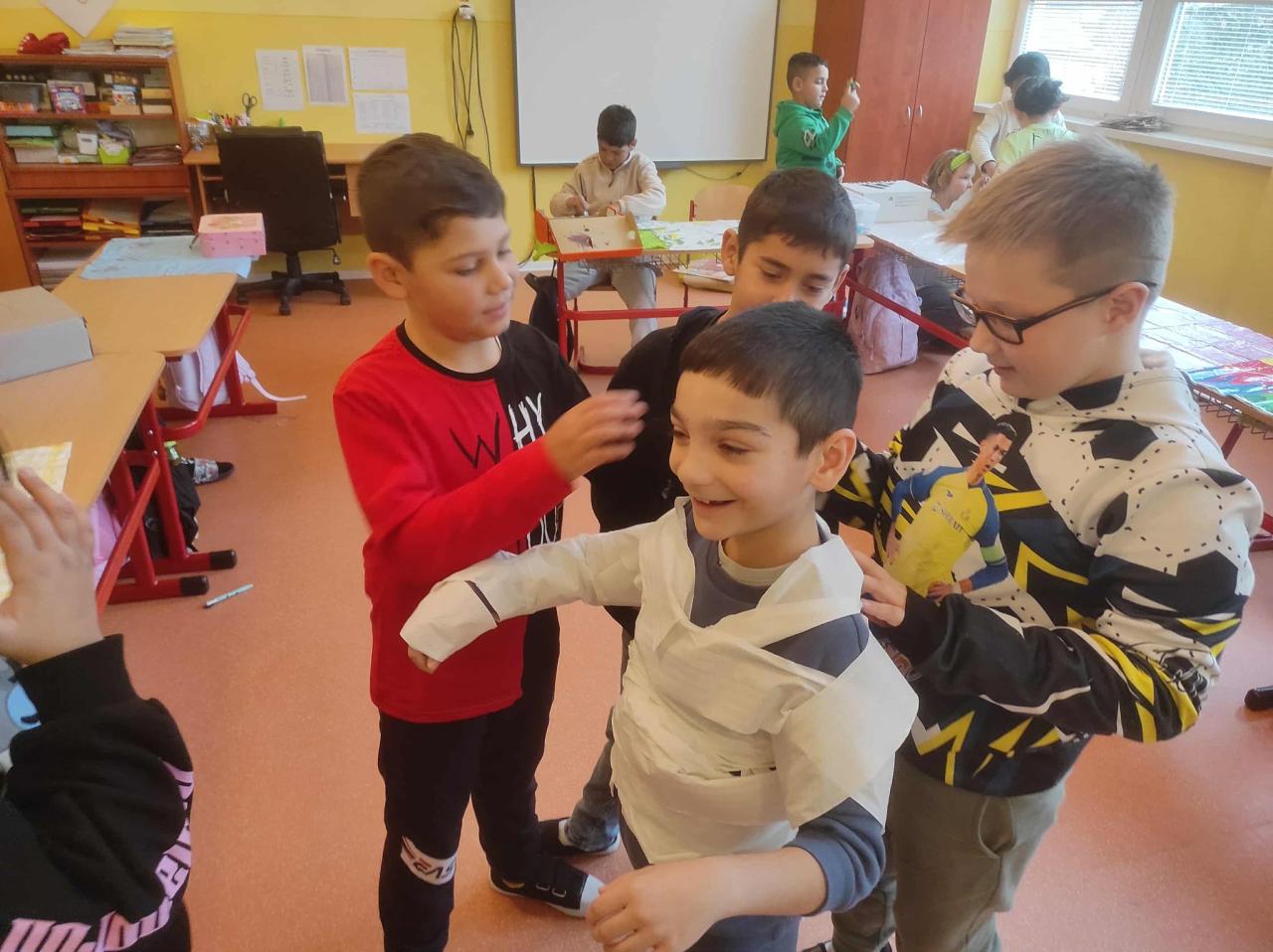 Žiaci 3. ročníka sa na hodinách výtvarnej výchovy prostredníctvom fantázie „preniesli“ do staroveku a pokúsili sa vytvoriť múmiu. Telo svojho spolužiaka postupne obalili a pomocou lepiacej pásky vytvorili model starovekej múmie. Obaľovali, lepili, formovali... Bola to zábava, ale aj poznávanie nového. Samozrejme, že pri práci žiaci dodržiavali bezpečnostné pokyny, aby neublížili ani sebe, ani spolužiakovi, ktorý predstavoval múmiu. Vypracovala: Mgr. Andrea Ceklárová