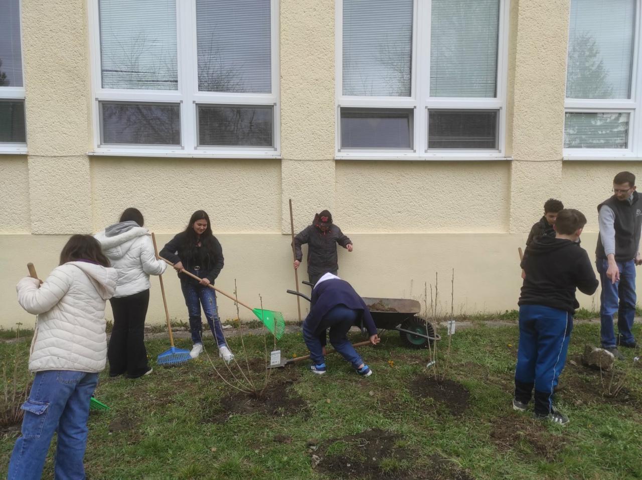 Výsadba ovocného sadu v škole.