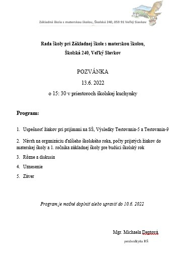 Pozvánka na zasadnutie RŠ 13.6.2022 - upravené